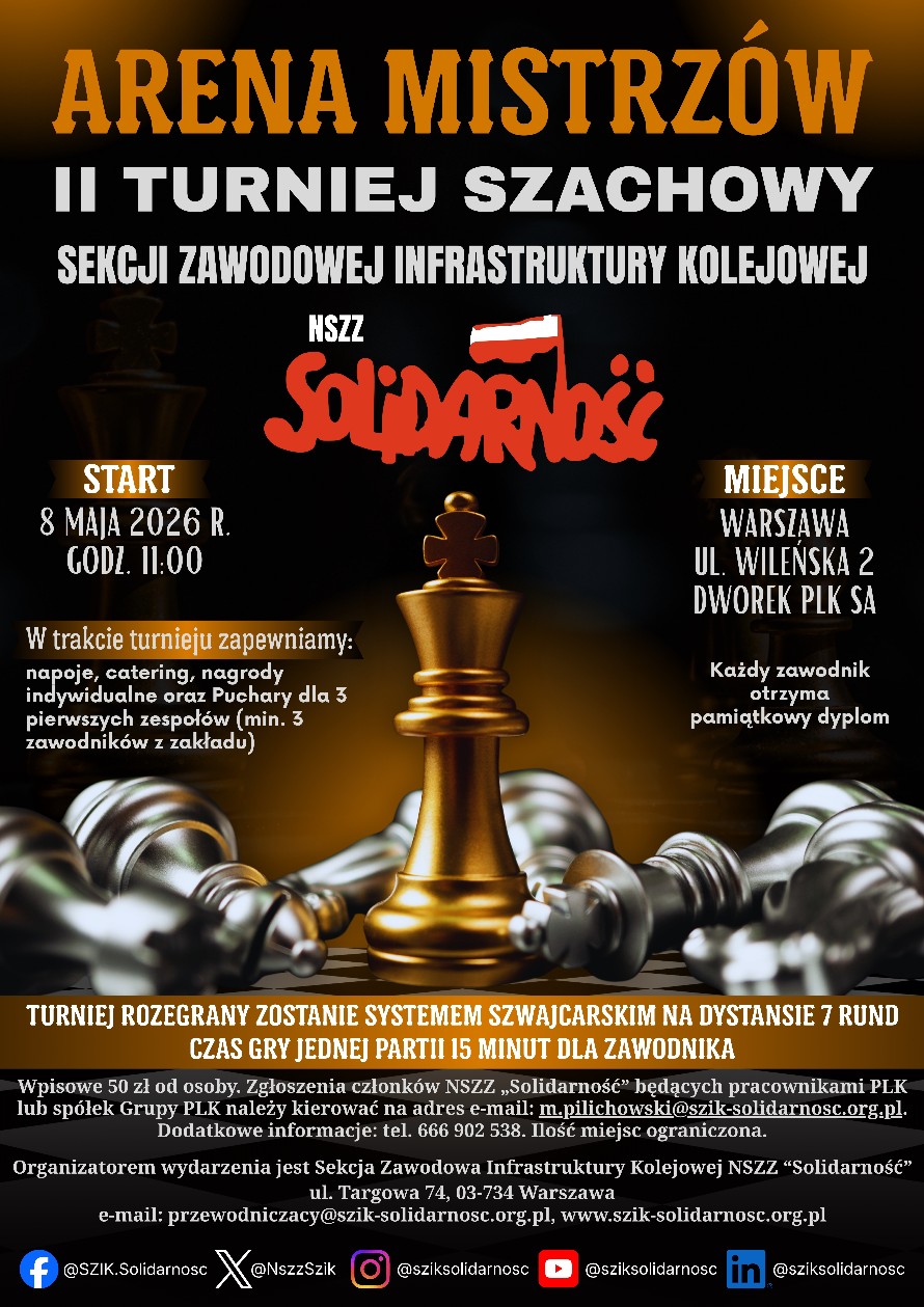Obradująca 13 stycznia 2026 r. Rada Sekcji Zawodowej Infrastruktury Kolejowej NSZZ „Solidarność” (SZIK) dyskutowała nad zmianami w Zespołach kolejowego ratownictwa technicznego. Efektem tego było przyjęcie stanowiska, w którym sekcja sprzeciwia się wdrażanym zmianom. Poniżej zamieszczamy treść tego stanowiska.Celem naszych turniejów jest upowszechnianie aktywności fizycznej i promowanie aktywnego spędzenia czasu oraz integracja środowiska kolejowego przez sport.
